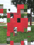 The second example is a photograph I took in Williamsburg, Brooklyn, of a small brick wall that a street artist painted red, and wrote a message on. The image on the left is the original image, and the image on the right is the image after being processed by the partition algorithm, which also produces a series of weights, based upon whether the algorithm thinks the region in question is a foreground feature. In this case, I’ve applied a “macro” version of the partition algorithm that searches for macroscopic objects, such as the wall. The darkness of a region indicates the probability of the region being a foreground feature, with darker regions less likely to be part of the foreground of the image. These weights are not relevant for purposes of this note, but they help to distinguish between the regions in the image identified by the partition algorithm, and demonstrate the algorithm’s ability to locate macroscopic boundaries of objects.