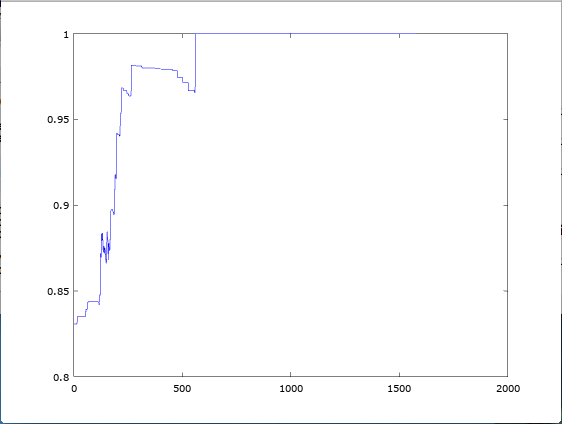 I’ve written the Octave code for what I’m calling a “Magic Button”, that allows you to search through predictions, and find a subset of the dataset that generates the desired accuracy. This is possible because of a confidence-based prediction algorithm, which assigns each prediction a confidence score, using a method I developed rooted in information theory. As you increase the confidence threshold, the number of predictions that satisfy the confidence threshold generally decreases, and the accuracy generally increases. You can read about the method in my paper, “Information, Knowledge, and Uncertainty“.