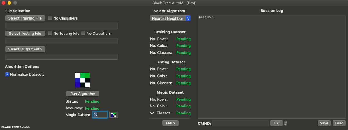 2. A Professional Version for $199, per user per year, that includes basically my entire library, and a Session Log that allows you to see the history of what you’ve done, save and load a prior session, and also inspect and operate on the dataset through commands entered into the GUI (see “CMND:”, below the Session Log screen, in the picture below). The actual A.I. code will run in Octave for the Pro Version, which means the runtimes are the same as my A.I. library, allowing for basically instant solutions to all core problems in deep learning, including prediction, clustering, image classification, video classification, object tracking, anomaly detection, time-series analysis, etc., though with the ease of a GUI written in Swift. The basic animating principle is to allow bright people that don’t know how to code, to execute sophisticated A.I. algorithms, in an interface comparable to Excel in complexity, and to allow actual data scientists to basically dispense with all routine tasks in deep learning. Though not finalized, this is roughly what both versions will look like when it’s done:
