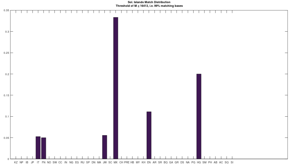 However, that’s not what’s important, though I will follow up tonight with more code, and instead, I stumbled upon what looks like a theorem of maximizing fitness through sexual reproduction. Specifically, if individuals mate by setting a minimum total fitness that is approximately the same as theirs (i.e., my mate is roughly as fit, overall, as I am), and that mate is at the same time maximally genetically distinct from the individual in question, then you maximize the fitness of the population. So to be crude, if I’m short, you’re tall, but neither of us are notably short or tall. As a consequence, we have roughly the same total fitness, but maximally different individual traits.